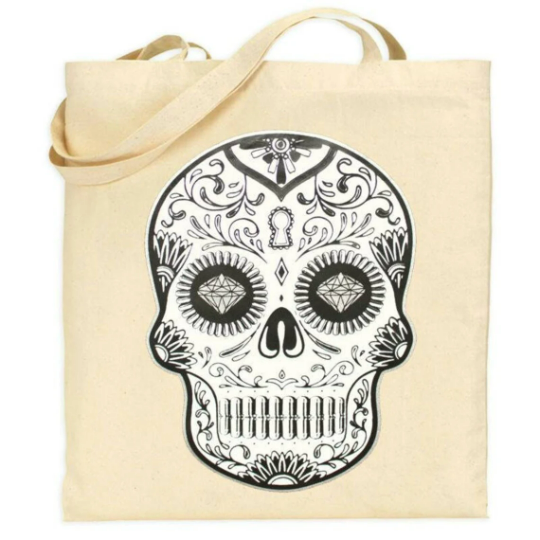Dia De Los Muertos Tote Bag Sugar Skull Canvas Tote Natural by Casita De Los Muertos