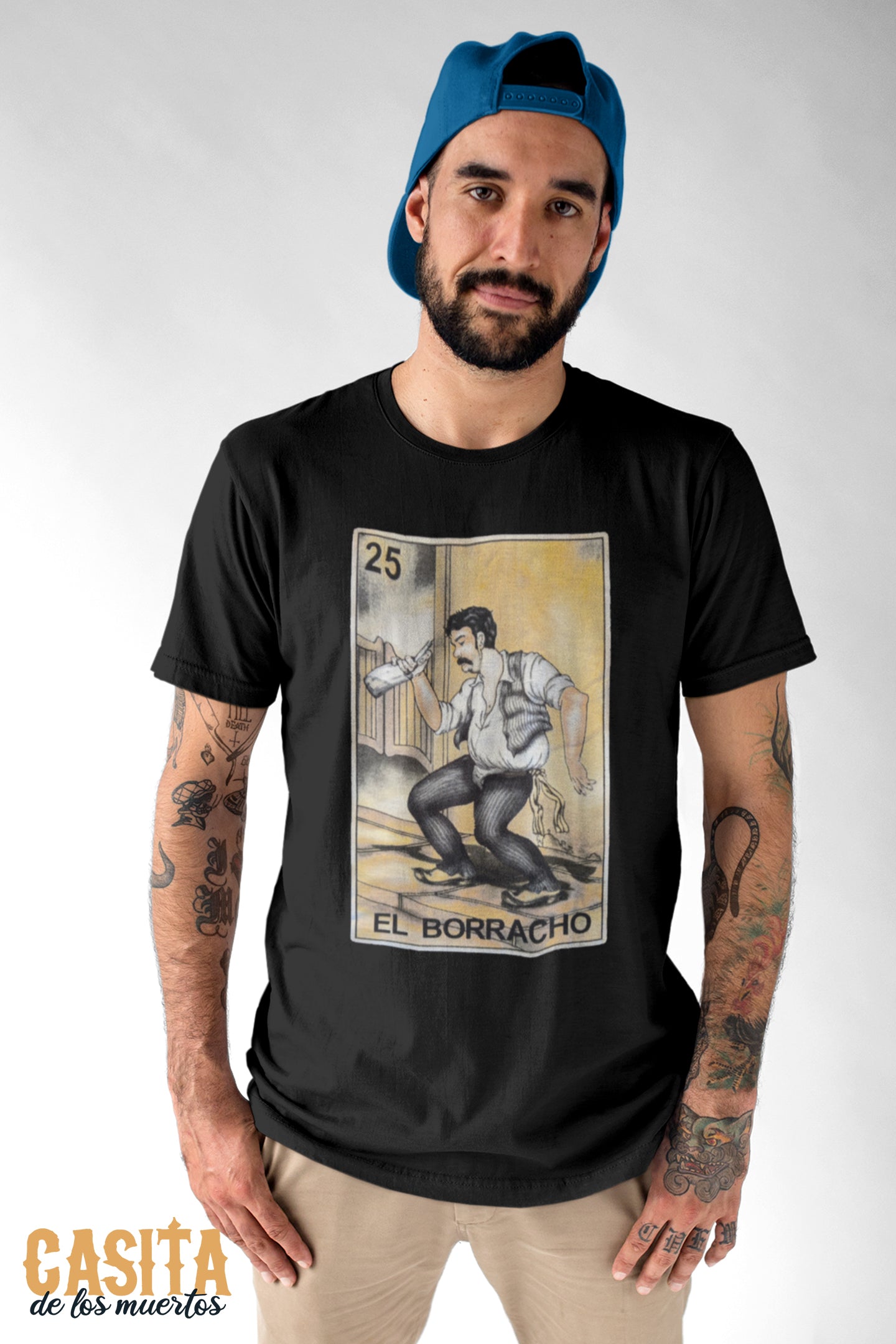 El Boracho T-Shirt, Mexican Loteria Inspired Black Cotton T-Shirt by Casita De Los Muertos