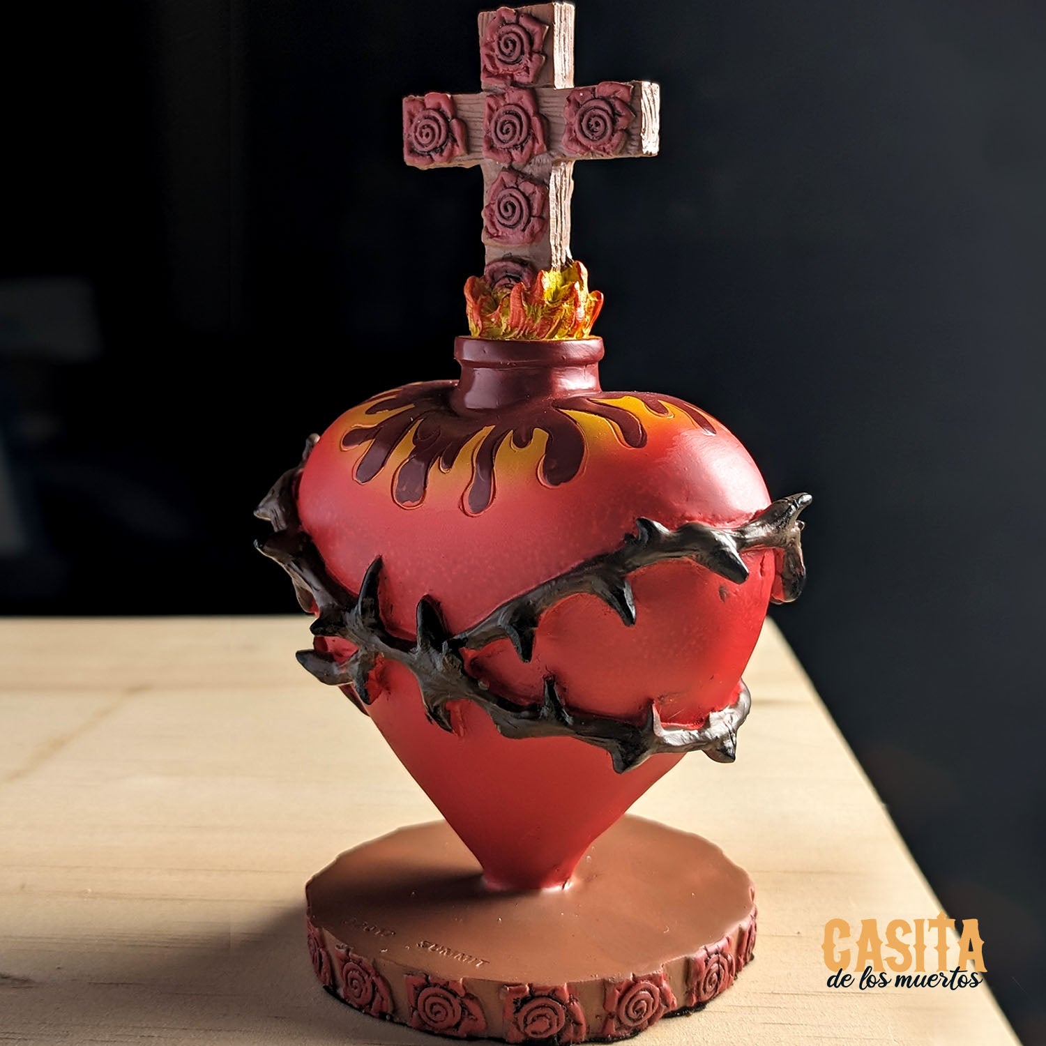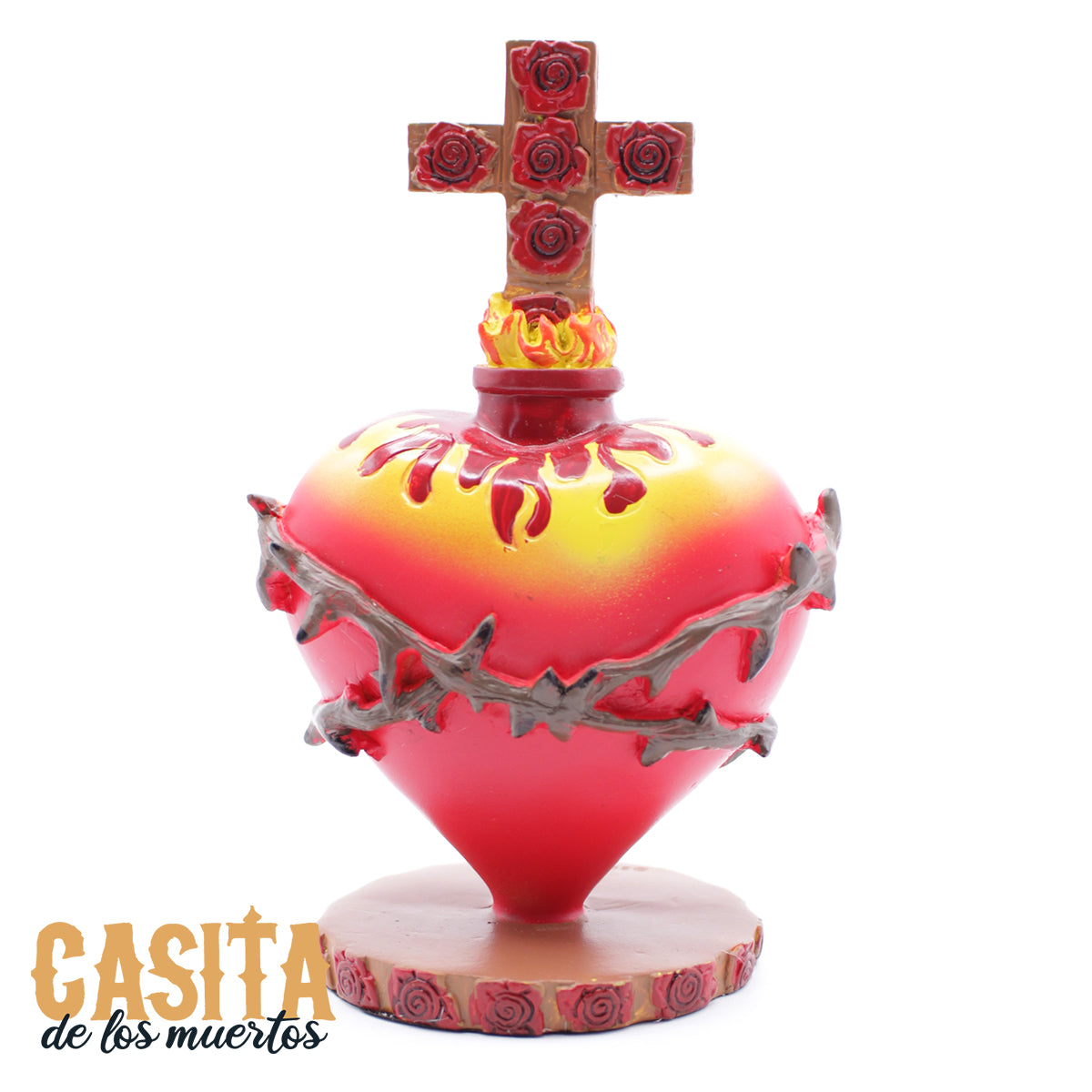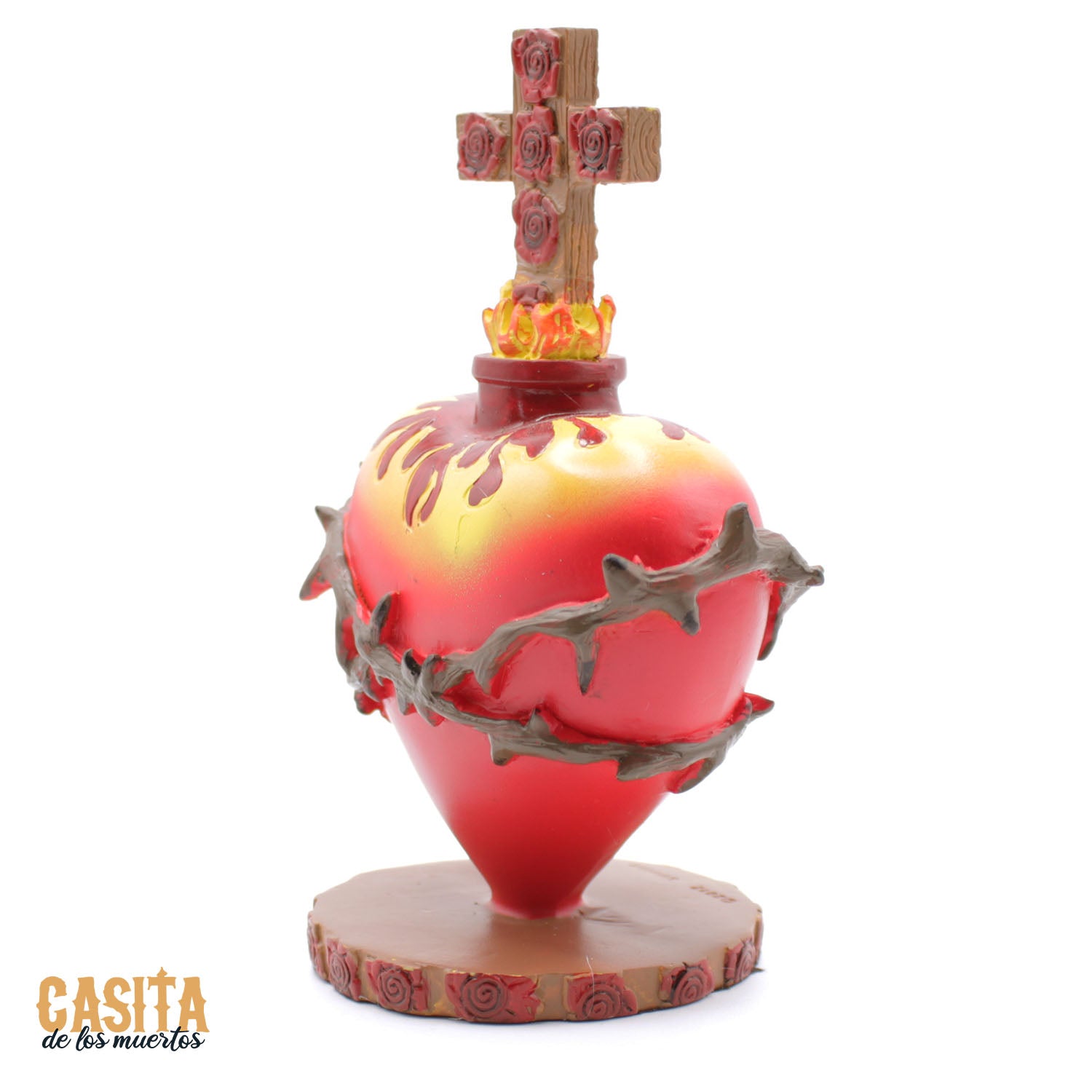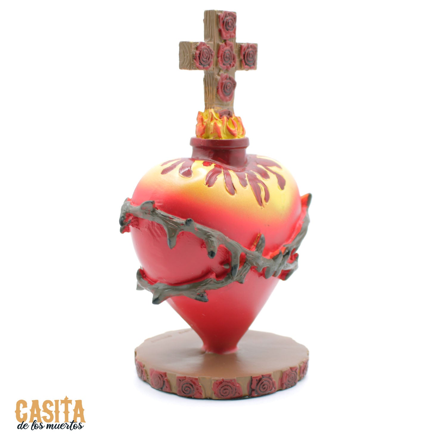 Sacred Cross and Heart Dia De Los Muertos Statue, Red Heart Traditional Statue by Casita De Los Muertos