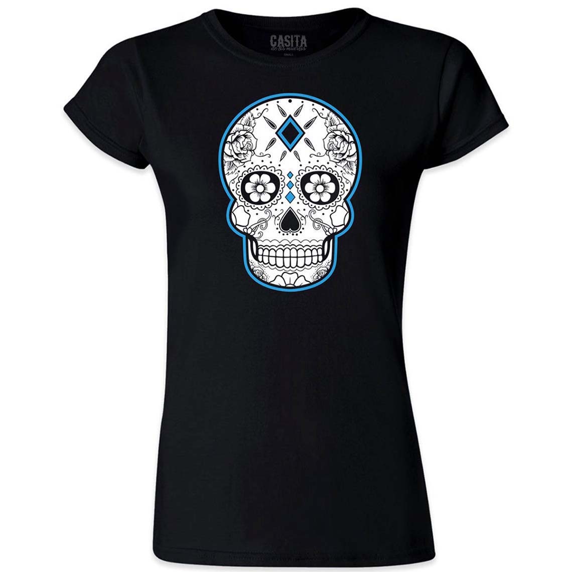Women’s Dia De Los Muertos Shirt, Sugar Skull Shirt, Light Blue Day of the Dead by Casita De Los Muertos