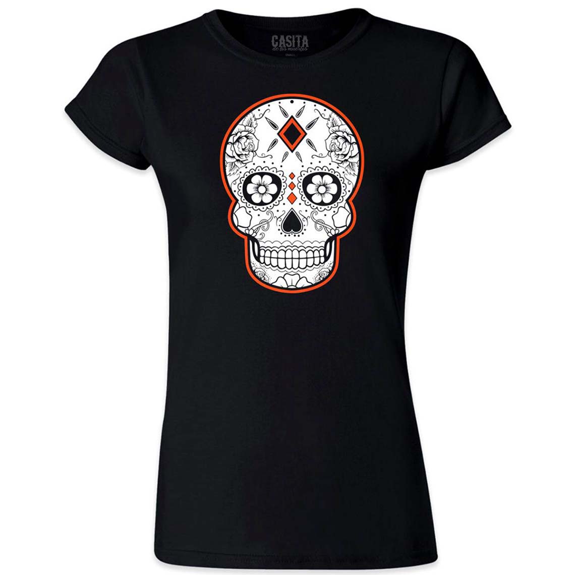 Women’s Dia De Los Muertos Shirt, Sugar Skull Shirt, Orange Day of the Dead by Casita De Los Muertos